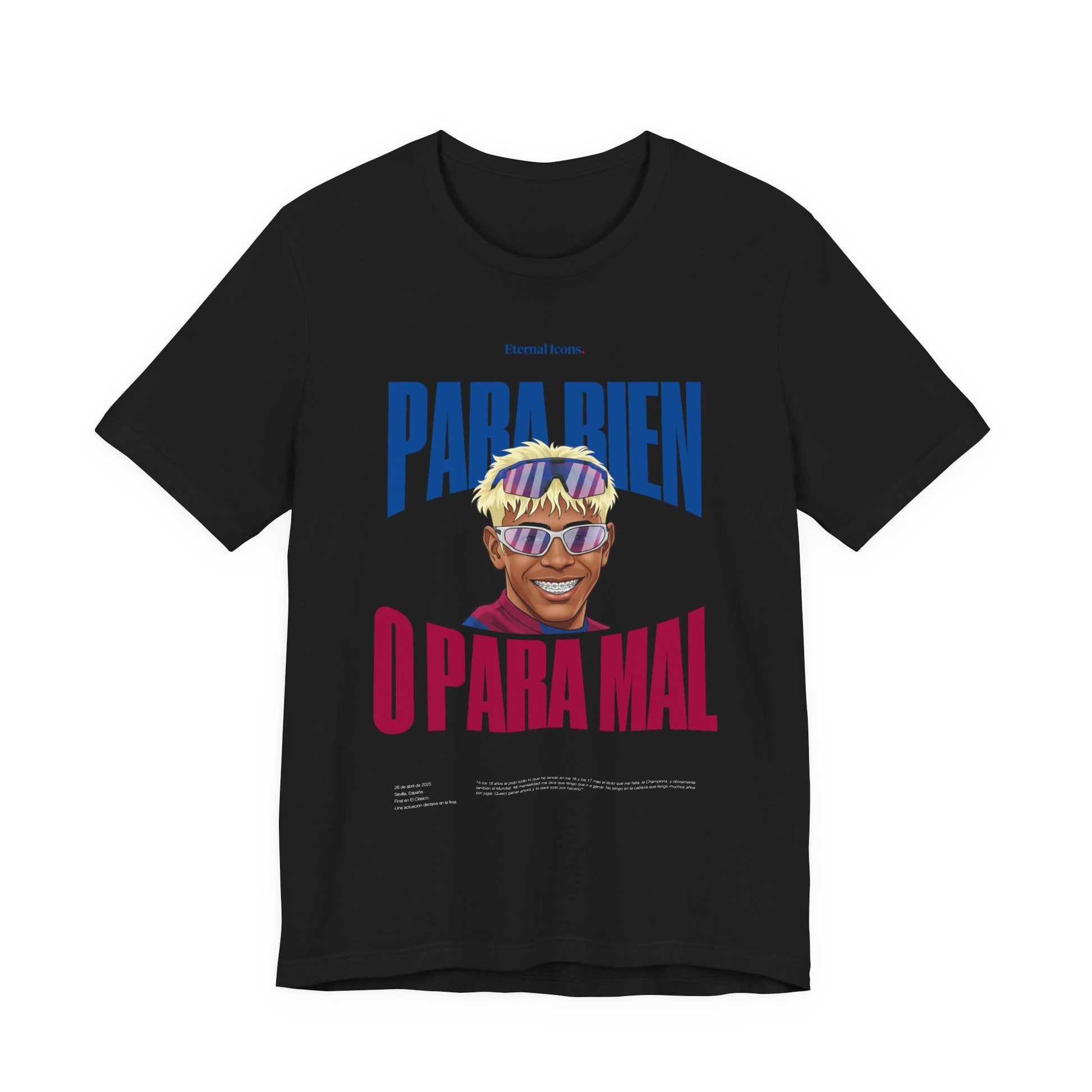 Esta camiseta es una pieza que nace de una frase simple, directa y cargada de significado: “para bien o para mal”. Una expresión que resume el peso de las expectativas, la exposición temprana y la valentía de asumir el protagonismo sin esconderse. Habla de crecer bajo la mirada de todos, de aceptar el error y el acierto con la misma entereza, y de entender que el camino hacia algo grande nunca es cómodo ni perfecto. Un concepto que representa identidad, carácter y la decisión de seguir adelante pase lo que pase.