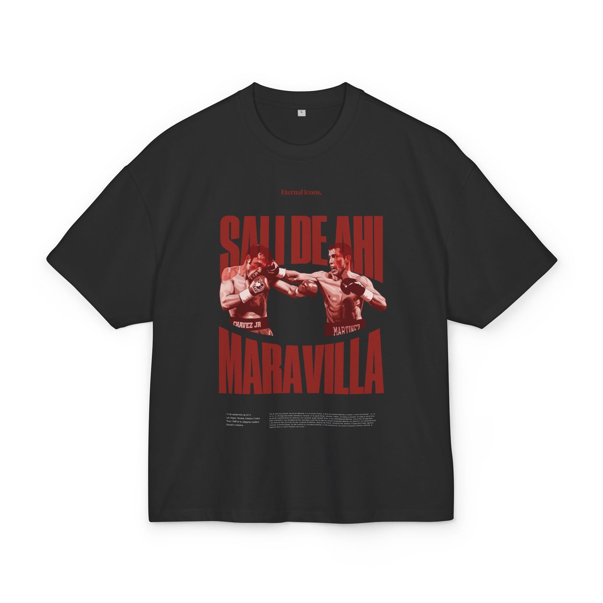 Esta camiseta revive uno de los instantes más dramáticos y recordados del deporte de combate: cuando todo parecía escaparse en los segundos finales y la victoria pendía de un hilo. En medio del cansancio, los golpes y la incertidumbre, una voz desesperada rompió el aire con una frase tan simple como urgente: “Salí de ahí”. Fue el grito que encarnó el miedo colectivo, la tensión máxima y la esperanza de resistir un poco más. Un momento donde el instinto de supervivencia, la experiencia y la voluntad se impusieron al caos, permitiendo cerrar una noche que estuvo a punto de cambiar de destino. Un concepto que representa resistencia, coraje y la capacidad de mantenerse en pie cuando todo parece perdido.