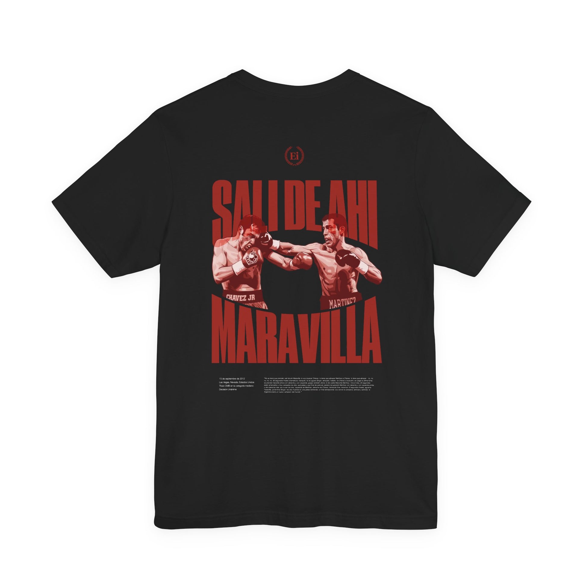 Esta camiseta revive uno de los instantes más dramáticos y recordados del deporte de combate: cuando todo parecía escaparse en los segundos finales y la victoria pendía de un hilo. En medio del cansancio, los golpes y la incertidumbre, una voz desesperada rompió el aire con una frase tan simple como urgente: “Salí de ahí”. Fue el grito que encarnó el miedo colectivo, la tensión máxima y la esperanza de resistir un poco más. Un momento donde el instinto de supervivencia, la experiencia y la voluntad se impusieron al caos, permitiendo cerrar una noche que estuvo a punto de cambiar de destino. Un concepto que representa resistencia, coraje y la capacidad de mantenerse en pie cuando todo parece perdido.