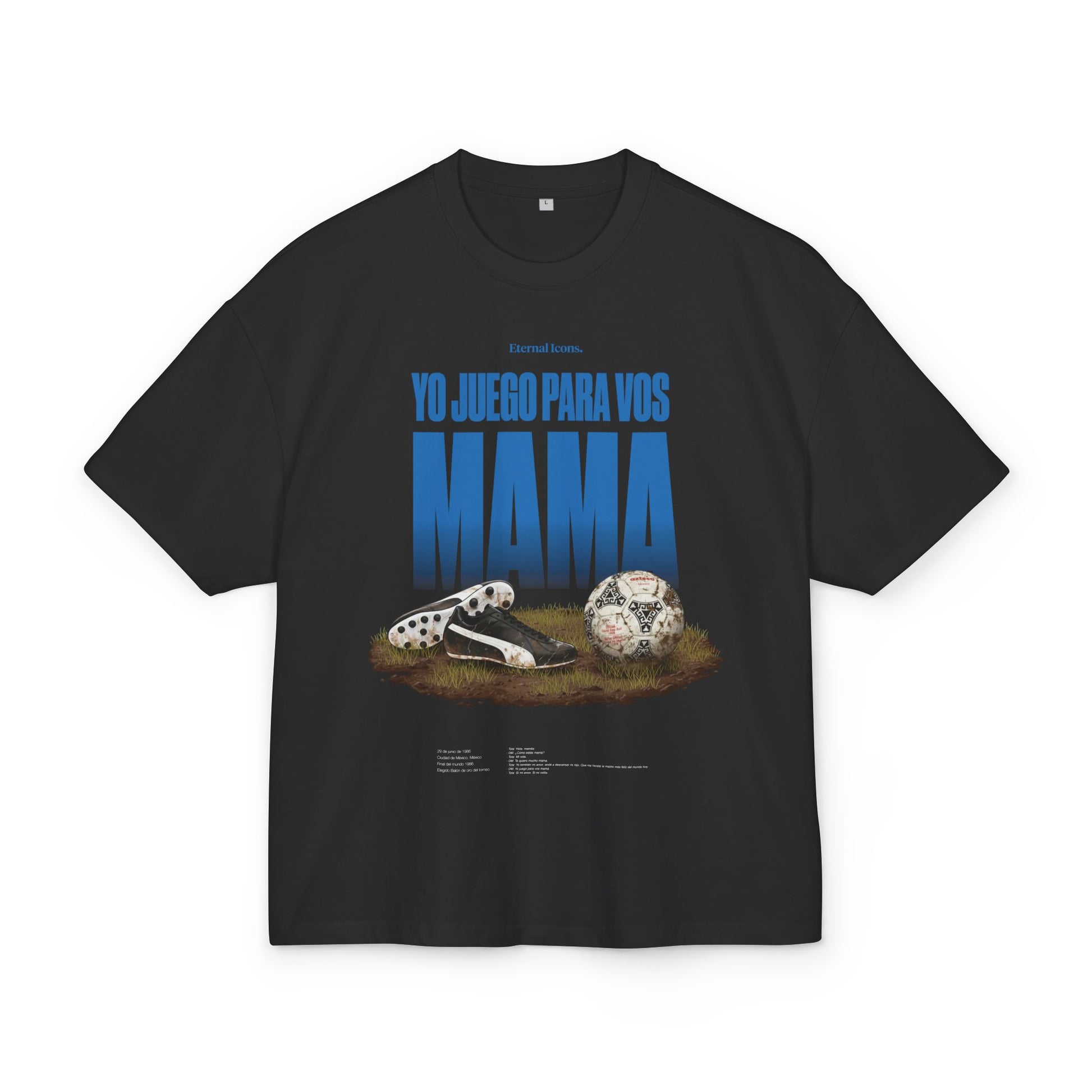Esta camiseta es un tributo a uno de los momentos más íntimos y conmovedores del deporte: la victoria máxima compartida no con el mundo, sino con quien estuvo desde el primer día. Tras alcanzar la cima, en medio del ruido y la gloria, apareció una frase sencilla y profunda dicha al teléfono: “Yo juego para vos, mamá”. Un recordatorio de que, detrás de los títulos y los estadios llenos, hay sacrificio, origen y amor incondicional. Un instante donde la grandeza se mide no por lo conseguido, sino por a quién va dedicado. Un concepto que habla de gratitud, identidad y de no olvidar nunca para quién se juega realmente.